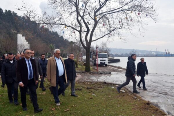 Başkan Posbıyık, beraberinde başkan yardımcıları, sorumlu müdür, teknik ekip ve peyzajcılarla birlikte sahil boyunca adım adım incelemelerde bulundu, yapılacak çalışmaları yerinde planladı.