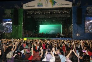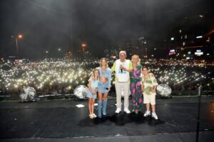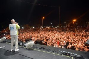 Belediye Başkanı Halil Posbıyık, sanatçılara çeşitli hediyeler takdim ettikten sonra onbinlerle birlikte “Sevgi, Barış, Dostluk..Ereğli İl Olsun” diye haykırdı.