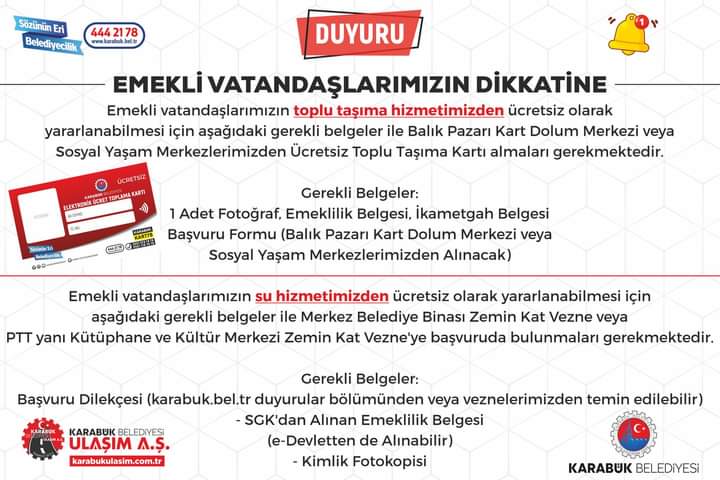 Ücretsiz Toplu Taşıma ve Su Hizmeti İçin Emekli Vatandaşlarımızın Dikkatine