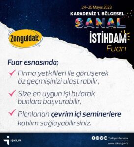 13 Ereğli’den olmak üzere İlimizden 51 firmanın katılım sağlayacağı, iki gün sürecek Fuar’da, kurumsal markaları tanıtmak, personel teşvikleri hakkında bilgi almak, personel ihtiyacına yönelik özgeçmiş havuzu oluşturmak, iş başvurusunda bulunanlarla online görüşme yapmak ve eleman ihtiyacını karşılarken network ağını da geliştirmek mümkün.
