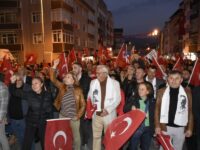 Atatürk ve Cumhuriyet sevgisini hep bir ağızdan haykıran, omuz omuza Türk Bayrağını dalgalandıran halk, sokakları insan seline döndürdü. Vatandaşlar, “Mustafa Kemal’in Askerleriyiz’ diye hep birden haykırdı.