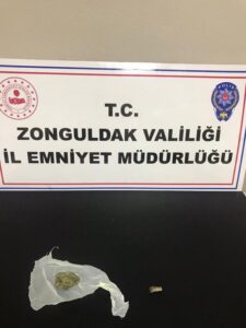 Asayiş Büro Amirliğimiz ekiplerince (U.T.) isimli şahıs üzerinden bir miktar esrar maddesi, (M.C.) isimli şahıs üzerinden bir miktar metamfetamin maddesi ile uyuşturucu kullanma aparatı,