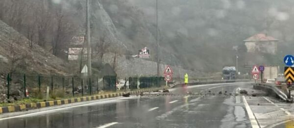 ⚠️Alaplı-Kdz.Ereğli karayolunda; Göktepe Altı,Sevgi Barış Dostluk Plajı karşısında yola kaya parçaları düşmesi ve heyelan sonucu karayolu trafiği an itibarıyla;